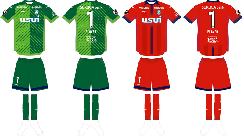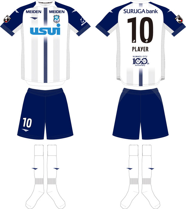 現時点での各部スポンサーは、胸に「USUI(臼井国際産業)」、背中上に「スルガ銀行」、背中下に「沼津市(市制100周年記念ロゴ)」、左右鎖骨に「MEIDEN(明電舎)」、左袖に「三ツ星不動産サービス」。