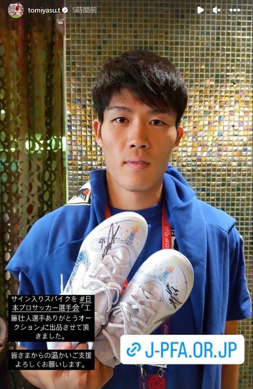 僕はカタールワールドカップスペイン戦で使用したスパイクをサイン入りで出品いたしました。工藤選手のご家族をサポートするためにご協力よろしくお願いします。#JPFAオークション@JPFA_NEWS https://t.co/6zP7NRPoA5 pic.twitter.com/lXnsPoNkrn