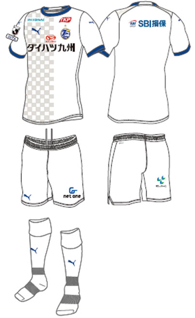 現時点での各部スポンサーは、胸に「ダイハツ九州」、鎖骨右に「RESONAC(レゾナックHD)」、鎖骨左に「TKP(ティ―ケーピー)」、背中上に「SBI損害保険」、パンツ前面に「net one(ネットワンシステムズ)」、パンツ背面に「ジェイリース」。