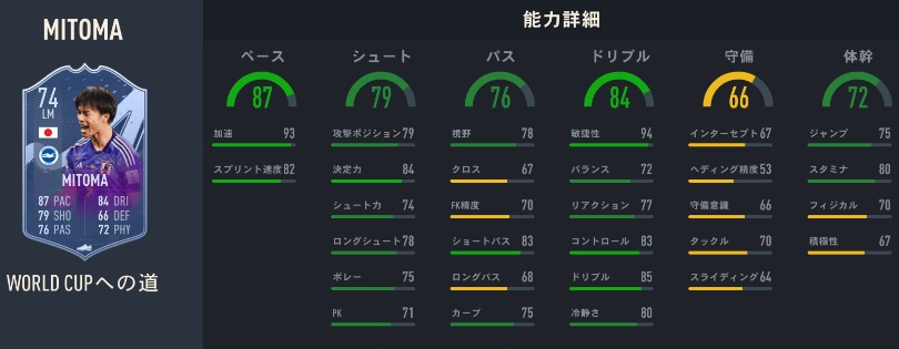 三笘はEA Sportsのサッカーゲーム『FIFA23』でどんな能力になっているのか。
