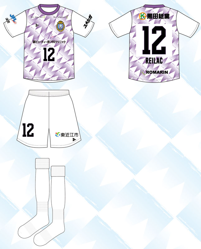 現時点での各部スポンサーは、胸に「麗ビューティー皮フ科クリニック」、背中上に「黒田紙業」、背中下に「ROMARIN(ロマラン)」、左右鎖骨に「Dr. Melon」、左袖に「ユメシガ」、パンツ前面に「東近江市」。
