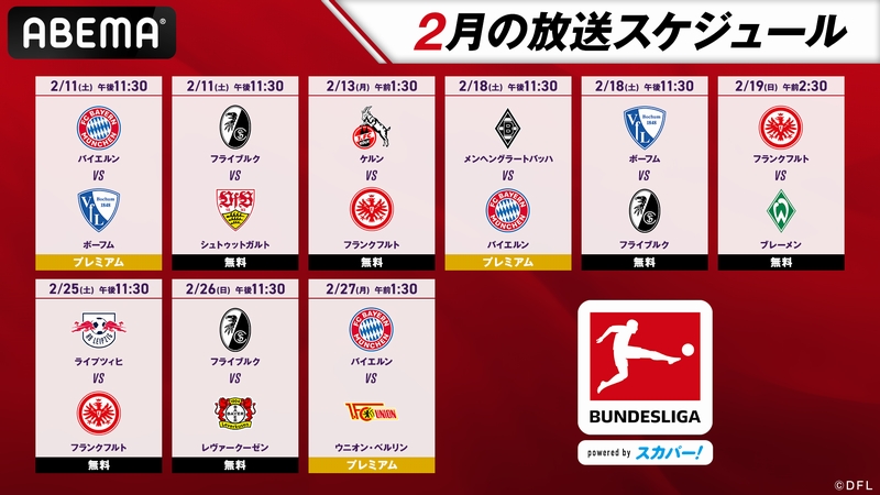 今回は、「ABEMA」で2月に放送されるイングランド・プレミアリーグとドイツ・ブンデスリーガの放送予定をまとめてみた。