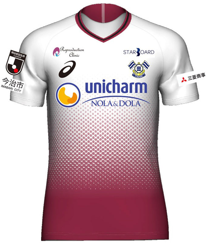 現時点での各部スポンサーは、胸に「ユニチャーム」、背中上に「Deloitte」、背中下に「xymax(ザイマックス)」、鎖骨右に「リプロダクションクリニック大阪」、鎖骨左に「Starboard」、左袖に「三菱商事」、パンツ前面に「今治造船」、パンツ背面に「日本M&Aセンター」。