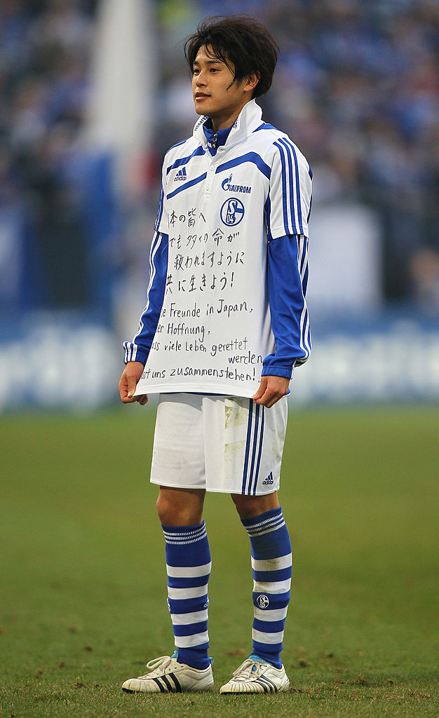 その中で、東日本大震災の後に行われた試合の写真が内田篤人に見せられた。それは勝利の後にメッセージが書かれたシャツをカメラに見せた場面。