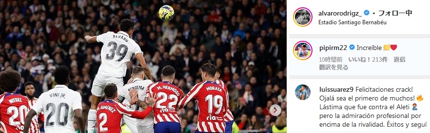 レアル・マドリー・カスティージャの同僚であるピピこと中井卓大も「素晴らしい」と拍手とハートの絵文字で反応していた。