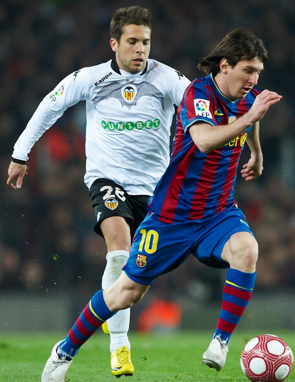 バルサの左サイドに欠かせないサイドバックが、バレンシアでプロデビューした当時の背番号が28番だった。