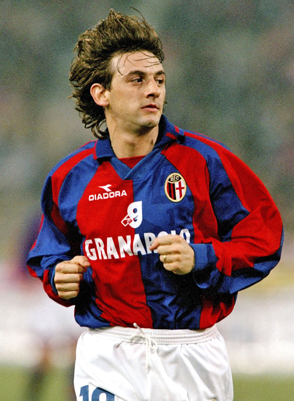 かつては中田英寿も在籍し、最近では冨安健洋の古巣として認知されているボローニャ。Diadoraとは96-97から99-00までの4シーズンでパートナシップを結んだ。左半身に大きなエンブレムを透かしであしらった当時のキットは人気が高く、ジュゼッペ・シニョーリ(画像)活躍の記憶も重なる。