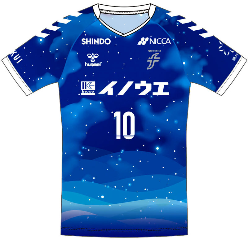 ホームキットは、澄んだ空気が奥越(福井県北東部)の星空を青く輝かせる様を描く。濃淡のブルーの夜空で輝きを放つ星の表現が実に見事!。目指すJFLどころかJリーグのクラブと比較しても何ら遜色のないデザインだ。