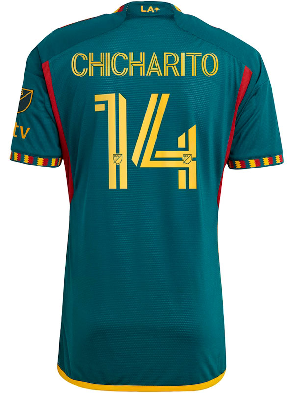 各部の差し色にはイエローとレッドを使い、ネームナンバーも同じ色味のイエローで統一。今回のキットカラー3色は本拠地ロサンゼルスに大きく関係するものであり、またクラブの初期を思い出させる懐かしい組合せだ。