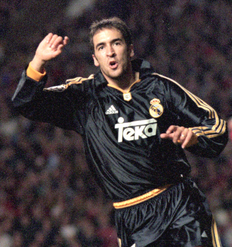 00-01シーズンはサードとして着用し、2シーズンにわたって使用したブラックカラーのユニフォーム。現在では定番となっているブラックはこのモデルが原点だ。ゴールド(オレンジ)の差し色が映えるデザインで、胸元にはエンブレムの「RMCF」文字を五角形の中に刻んだミニ紋章が付く。