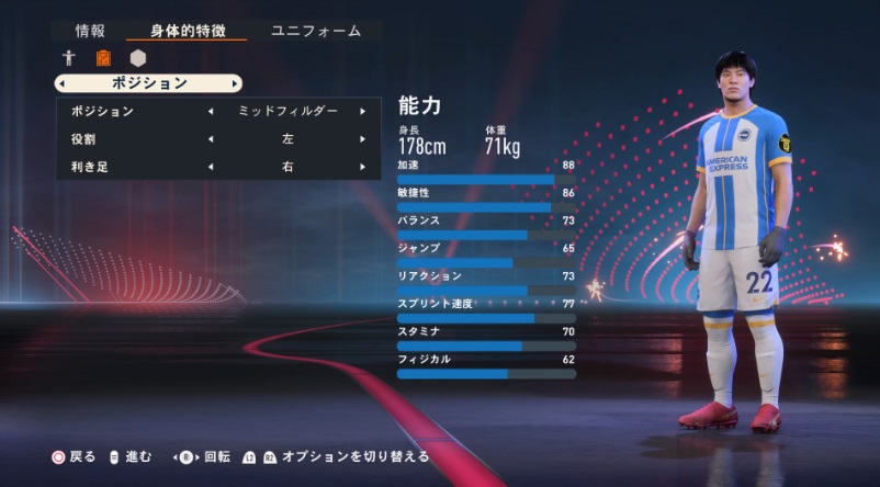 アーセナルDF冨安健洋は今季途中に固有フェイス化されたが、三笘にも同様にアップデートを期待したい。