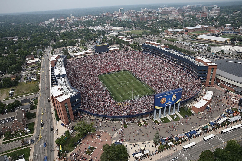 そして1位は、北米最大の“ハコ”として知られるミシガン・スタジアム。2014年8月2日のインターナショナルチャンピオンズカップ、レアル・マドリー対マンチェスター・ユナイテッド戦には国内でのサッカー史上最多の109,318人が詰めかけて大きな話題となった。