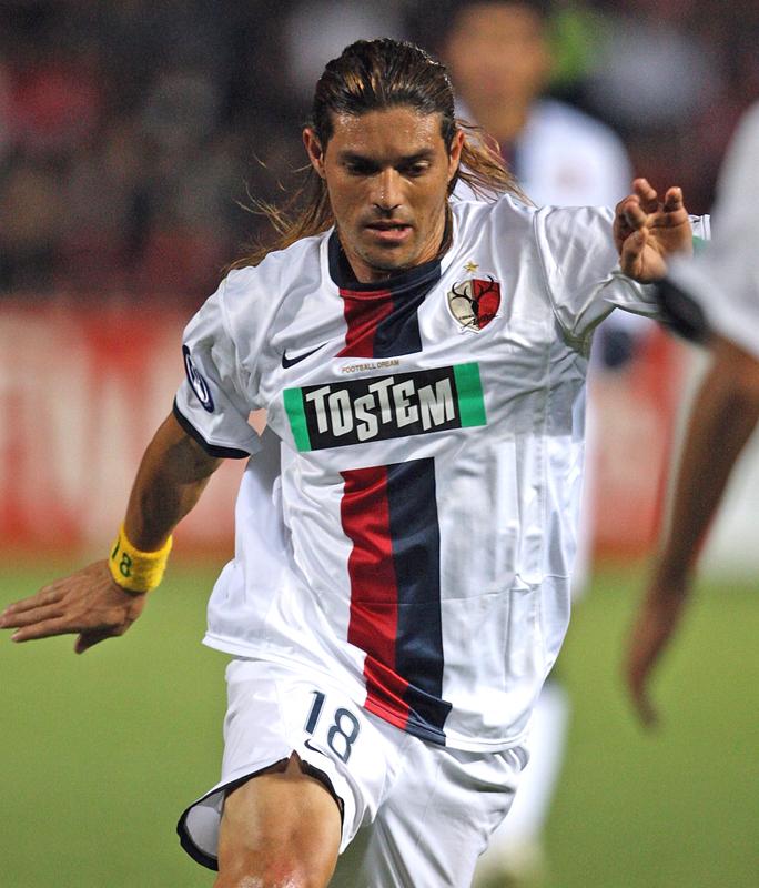 同じく3連覇の偉業を成し遂げたシーズンでのアウェイユニフォーム。パリ・サンジェルマンのような中央ストライプは鹿島での異色のデザインである。