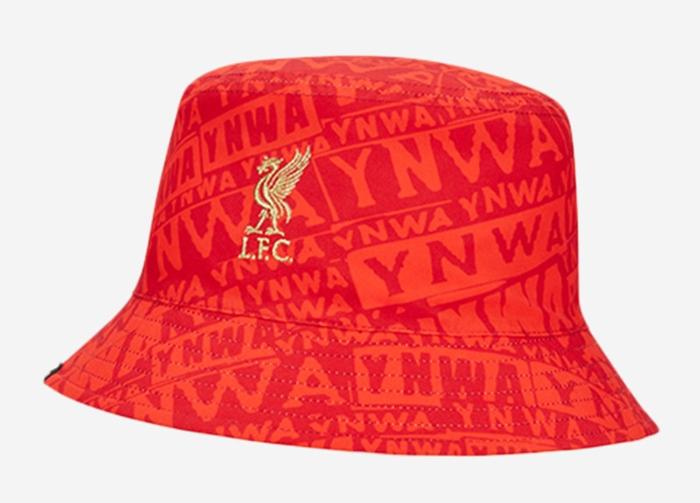 リヴァプールのユニフォームを彷彿させる赤と白のバケットハット。リバーシブルタイプで、赤側はYNWAを大胆にデザインし、白側はシンプルにライヴァーバードを配する。