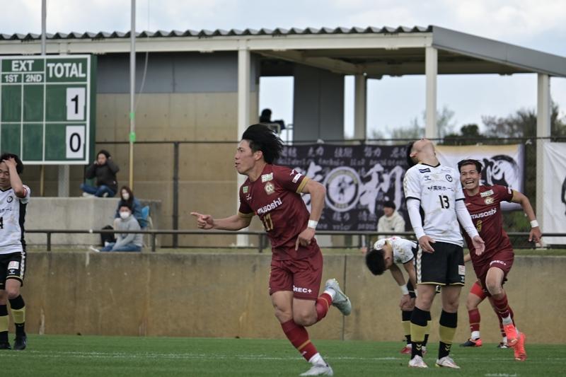試合を先に動かしたのはそのCento Cuore HARIMA。前半15分、セットプレーのこぼれ球からキャプテンの松本祐樹が押し込み、先制点を奪取する。