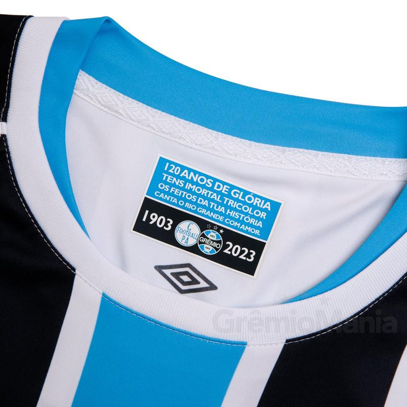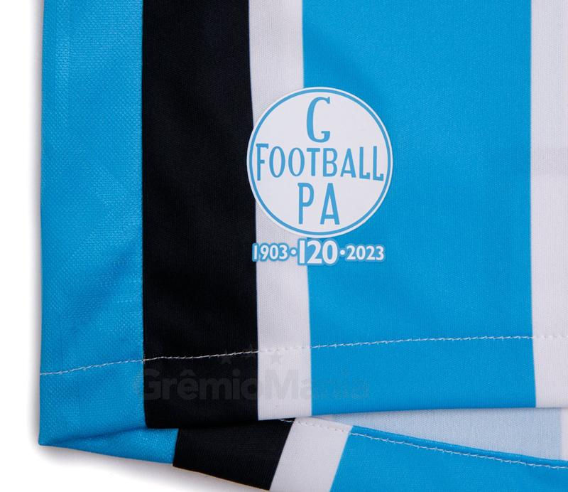 通常のホームキットとはいえ、至る所に120周年を祝うロゴマークを配置。前面右裾の白くて丸いロゴマークはクラブの初代エンブレムで、1904年までの1年間だけ使われている。