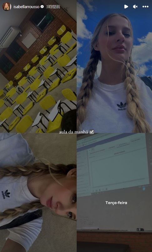 「火曜の授業」として、教室の様子などを写している。三つ編みにadidasの白Tというラフなスタイルだったようだ。