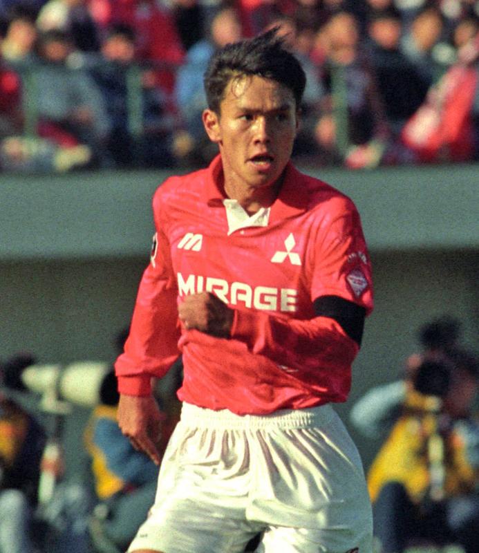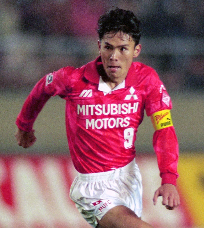 Jリーグ“オリジナル10”の浦和にとって記念すべき初年度のユニフォーム。ダイヤモンド柄の透かしプリントが特徴的なデザインだ。左胸には三菱のマークを配しエンブレムは左袖に装着。ちなみにレプリカユニだとエンブレムは胸に付いていた。