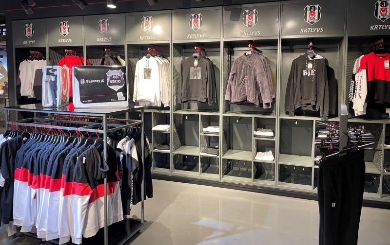 フロアの奥まで進むと、スタジアムのドレッシングルームをイメージした部屋があり、そこには一面ベシクタシュのユニフォームが飾られている。
