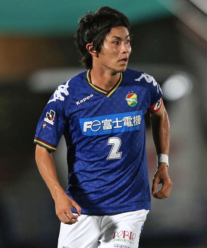 J2を3位で終えて昇格プレーオフに出場したシーズンのアウェイユニフォーム。濃いブルーを基調に細かなグラフィックが特徴的なデザインで、襟と袖口に配したラスタカラーのようなチームカラーの3色ストライプが格好よい。