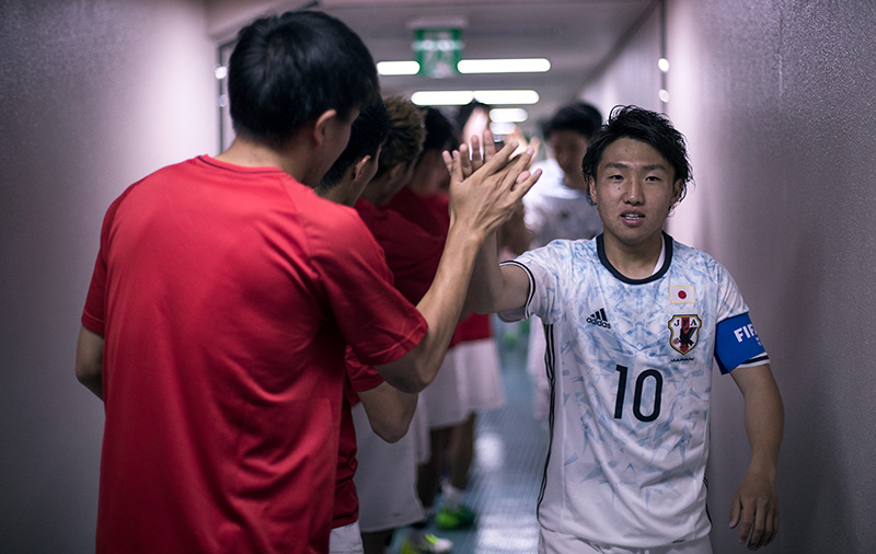 予選となったAFC U-19選手権で悲願の初優勝を成し遂げ、10年ぶりにU-20W杯出場権を獲得したこの世代。キャプテンを務めた坂井大将が予選から引き続き10番を与えられた。