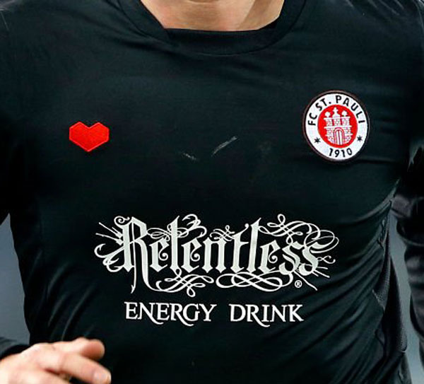 ドイツで最もRockなクラブチーム、ザンクト・パウリ。このシーズンのみだがエナジードリンクのRelentlessと契約し、ユニフォームの胸に圧倒的存在感のあるロゴマークを付けた。真っ黒なサードユニにこのロゴは完璧なコンビネーション!