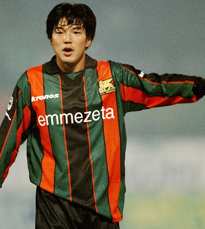 名波浩とって唯一の海外シーズンがヴェネツィア。お茶漬けのパッケージを思わせるデザインから、おそらくサッカー界で唯一「永谷園」と呼ばれるユニフォームだ。ホームキットと思われがちだが、正しくはフォースであり事実上のホームキット。