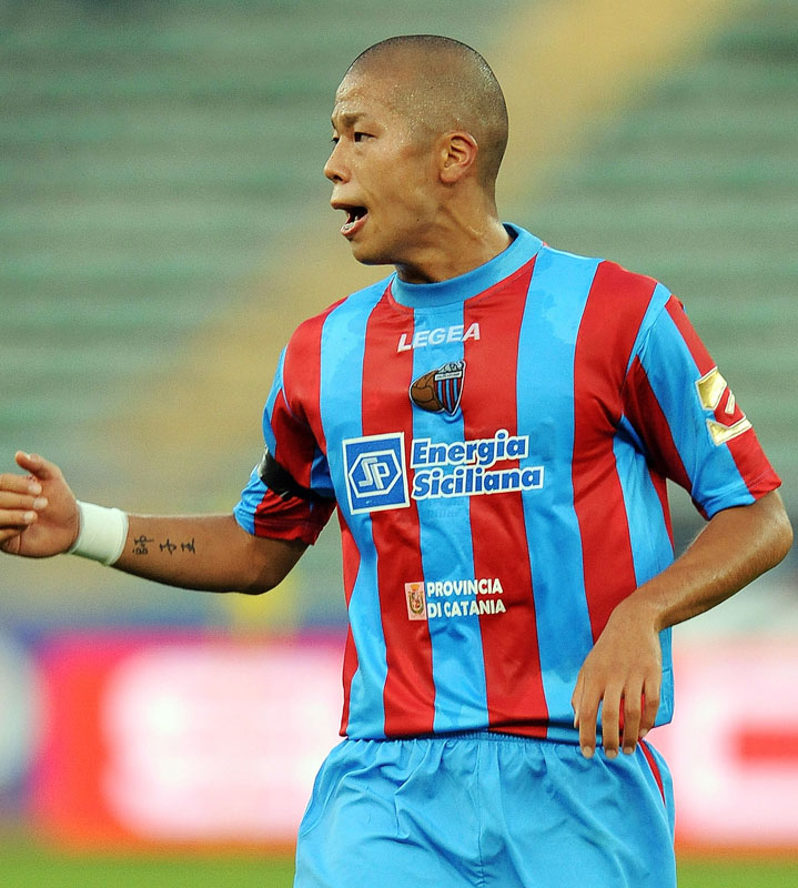 東京ヴェルディからカターニアに移籍した森本が在籍5シーズン半で最も活躍したのは、この2008-10モデルを着用した2シーズン。チームエンブレムは欧州のクラブにしては珍しく象を描くが、これはカターニアの街のシンボルが象であるため。