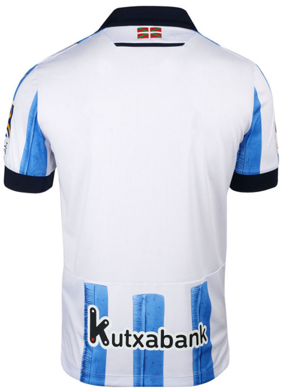 背面首元にはバスク旗のイクリニャを配置。腰部分のスポンサーはバスクの大手銀行「Kutxabank」で継続。発表時点で胸スポンサーは付いていないが、4日のリーグ最終戦では22-23シーズンのスポンサー「CAZOO」のロゴマークが付くと思われる。