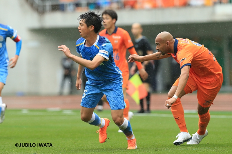 今季J2初出場となった静岡ダービー。昨季のJ1得点王チアゴ・サンタナとも対峙。 (写真提供:ジュビロ磐田)