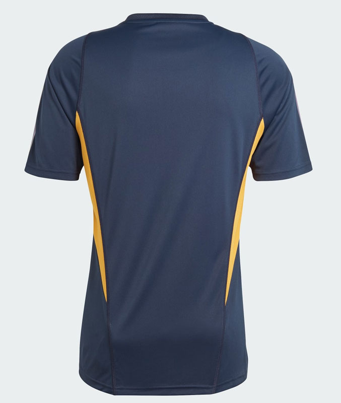 選手がトレーニング時に着用する半袖ジャージ。吸汗性・速乾性・透湿性・保温性をサポートするAEROREADYを搭載。素材には100%リサイクルポリエステルを使用。