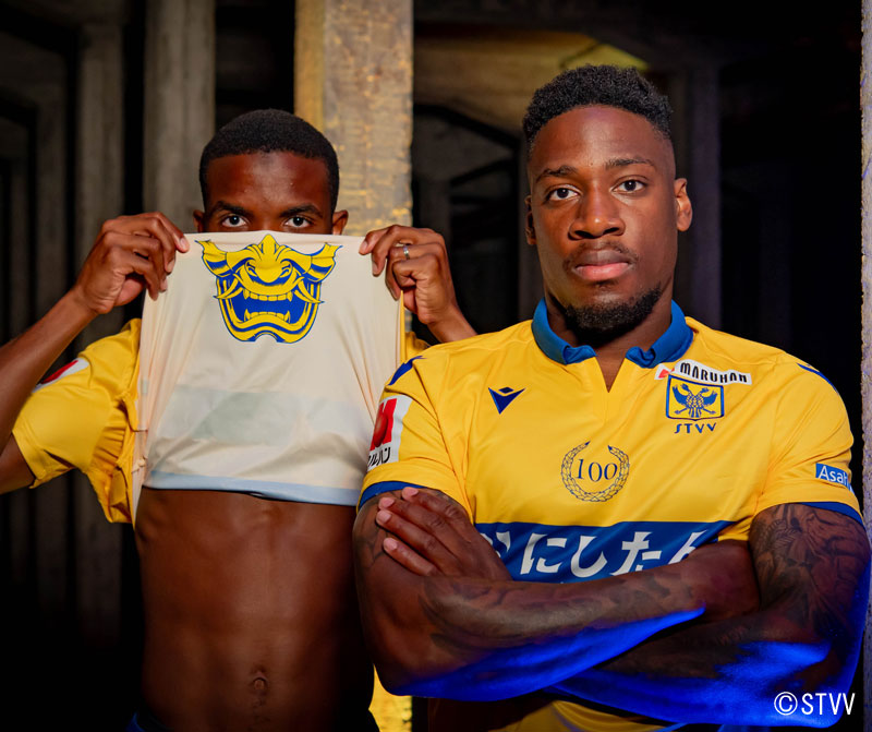 シャツ内側にはSTVVと日本との繋がりを表現し、STVVの選手達が持つサムライのような闘争心を象徴した“サムライマスク”をデザイン。このマスクは、実際の鎧兜では面貌(めんぼう)にあたる物だ。