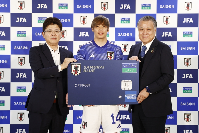 クレディセゾンは、既存の「JAPANカードセゾン」と同様の強化資金寄付の機能を備えた「SAMURAI BLUEカード」を年内に発行することを発表。これに対し田嶋会長は「JFAとクレディセゾンの持つ国内外のネットワークを融合させ、新しい時代にあった価値を創造し、社会問題に向き合いたい」と、今後への期待を膨らませた。