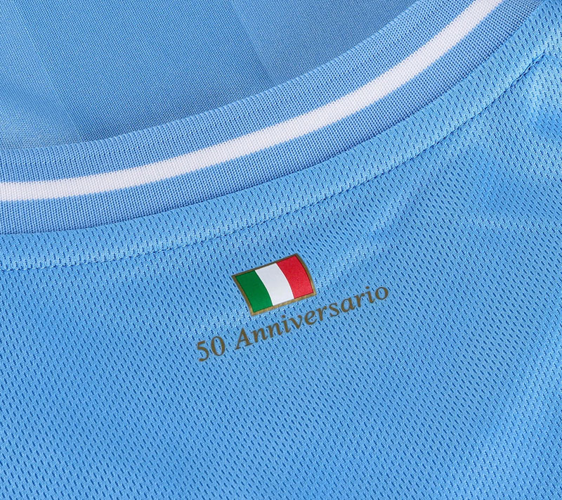 背面首元には優勝50周年を祝して、イタリア国旗のトリコロールと“50 Anniversario”をプリント。シーズンユニフォームでありながらコレクション性の高いデザインとなっている。