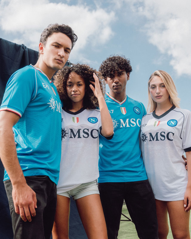 サプライヤーのEA7はファッションブランド「EMPORIO ARMANI(エンポリオ・アルマーニ)」が展開するスポーツライン。21-22シーズンにナポリのサプライヤーとして初のサッカー界進出を果たしている。