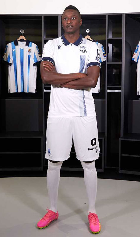 アウェイとサードはどちらもエンブレム側に立体デザインのストライプを配する。これは23-24ホームキットに描かれたものと同じで、バスク地方を拠点に活動するソシエダファンの彫刻家イニゴ・マンテローラによるものだ。