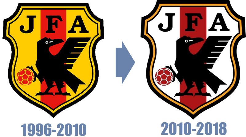 日本代表は2010年にエンブレムのデザインを変更した。この時は色の変更のみであったが、日本が初めてW杯に出場した1998モデルの「黄-赤-黄」から、シンプルな日の丸カラーに戻している。この点は評価する声もあった一方で、98年の記憶が薄れていくと残念がる声も少なくなかった。