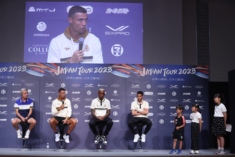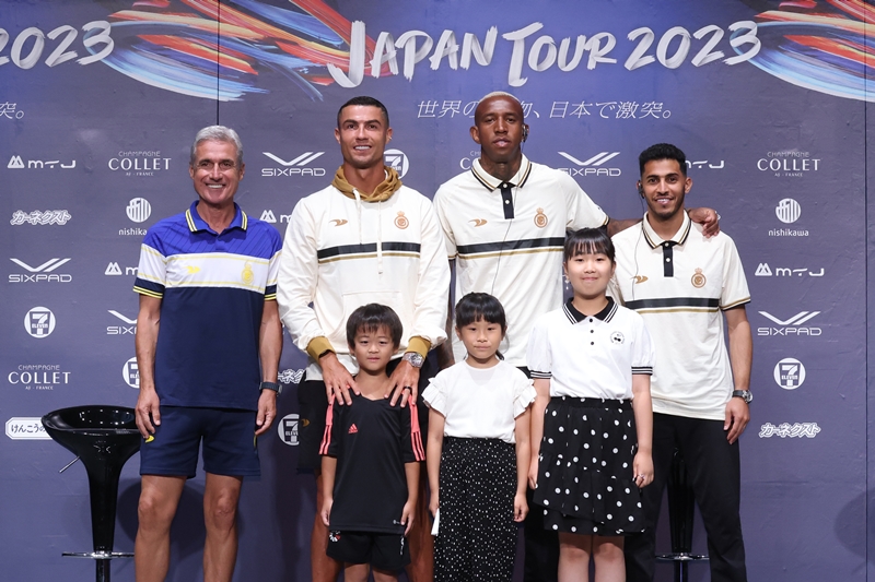 7月23日、ホテル日航大阪でアル・ナスルジャパンツアーの来日記者会見が行われ、ルイス・カストロ監督、クリスティアーノ・ロナウド、アンデルソン・タリスカ、そしてスルタン・アル・ガンナームの4名が登壇した。
