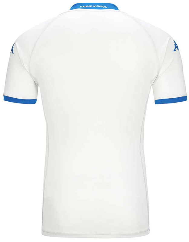 シャツの背面襟部分には“Daghe Munegu”(行けモナコ)をレタリング。パンツとソックスはホワイトをメインとし、メーカーロゴやエンブレムなどをブルーで彩る。