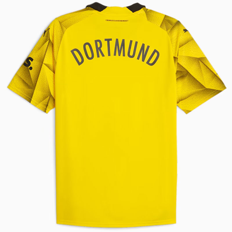 23-24新サードユニフォームは、イエローを主体に幾何学的なグラフィックが目を引くデザイン。今回のテーマは「レトロフューチャー」で、ホームタウンであるドルトムントの歴史にインスピレーションを得たものだという。