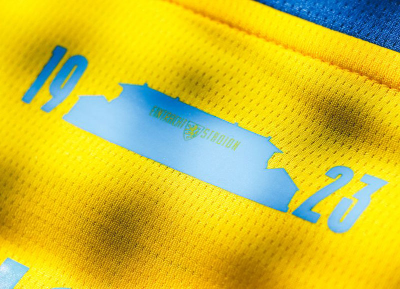 23-24新ホームユニフォームは、ブラウンシュヴァイク伝統のイエロー/ブルーによるデザイン(この色については後述)。22-23シーズンは稲妻模様のような大胆なグラフィックを採用していたが、今回はクラシックなピンストライプ柄が登場した。