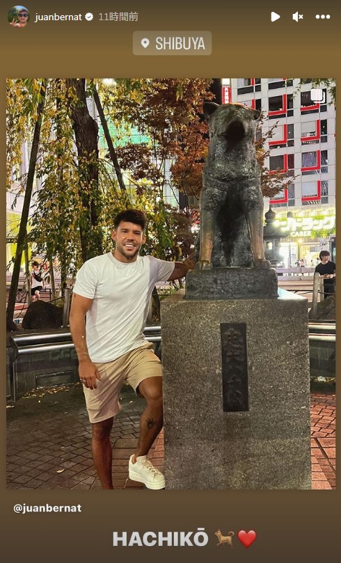 スペイン人DFフアン・ベルナトは両国で訪れた場所の写真をSNSに投稿していた。