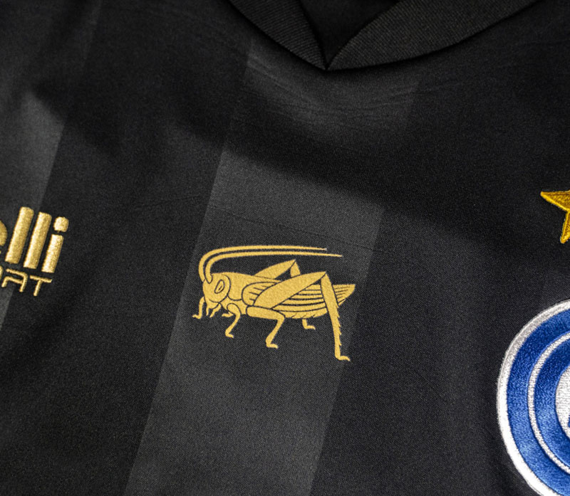 背中はご覧の通りの完璧なブラック&ゴールド。首元にはスローガン“Für GC Züri”(グラスホッパー・クラブ・チューリッヒのために)をレタリングする。