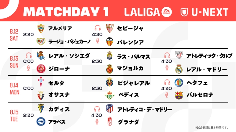 U-NEXTでは、コパ・デル・レイ(スペイン国王杯)と、ラ・リーガとコパ・デル・レイからそれぞれ上位2チームが出場するスーペルコパ・デ・エスパーニャも独占ライブ配信。