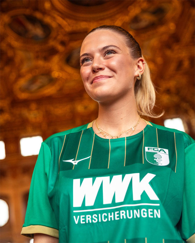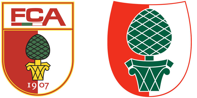 クラブエンブレムのデザインは、画像右にあるホームタウンのアウクスブルク市章をベースにしたデザインされている。ユニフォームに使われるホワイト、レッド、グリーンは街の色であり、市章や旗と同じである。