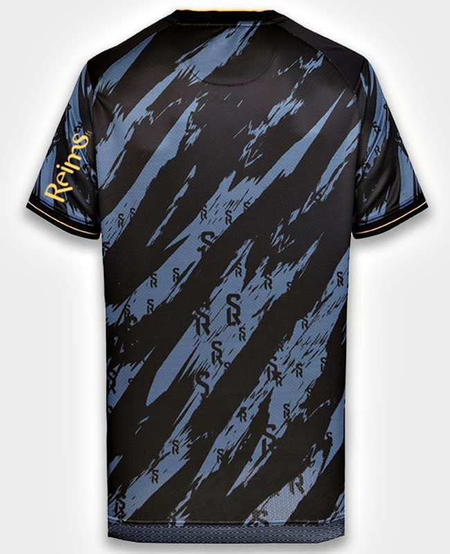 23-24新サードユニフォームは昨季に引き続きダークカラーを採用。ブラックとスチールブルーでアニマル柄のような爪跡デザインがワイルドだ。