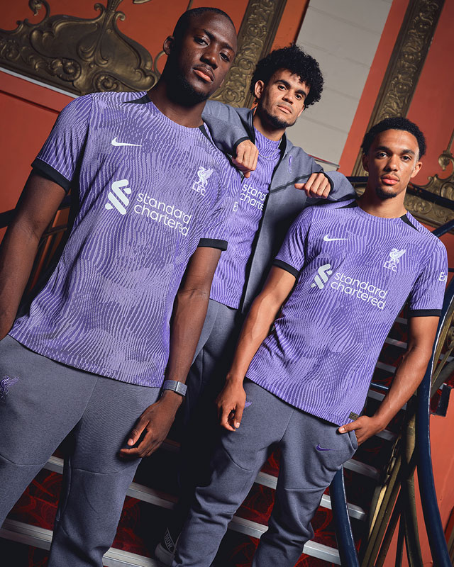 リヴァプールにこの系統色のユニフォームはGKモデルを除けばほとんど無い。18-19アウェイユニフォームの他には12-13サードユニフォームくらいで、実はレアなキットカラーである。