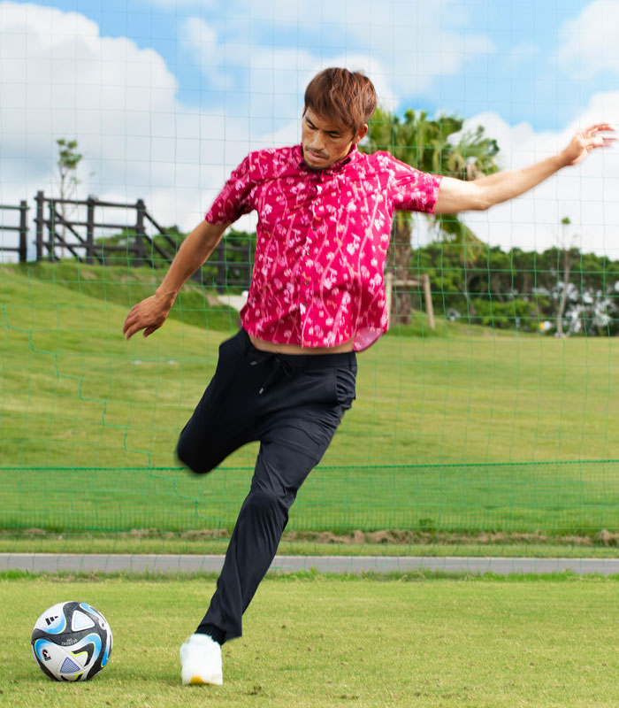 チームカラーである「ベンガラ色」を基調とした、オリジナルデザインの“かりゆし風シャツ”も登場。