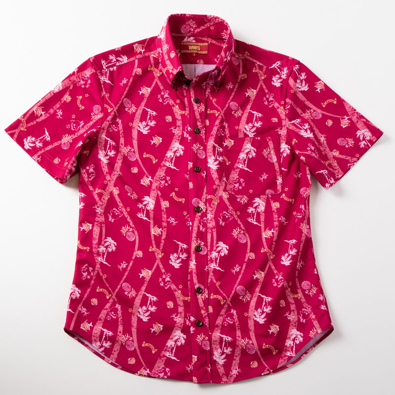 沖縄を感じられる柄を存分に散りばめた今回のコラボ限定のデザイン。沖縄に行かずとも沖縄感を楽しめるリゾートな雰囲気にあふれるシャツで、クールビズにもおすすめだ。