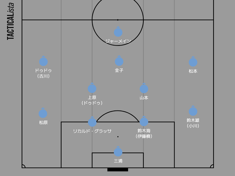 1トップはチームトップのリーグ戦8得点を記録しているジャーメイン良がエースとして君臨。高さと強さをもたらすファビアン・ゴンザレスと“アカデミー出身の新星”後藤啓介という強力なフォワードもおり、彼らが最前線に入る場合は、ジャーメインが一列下がってトップ下のようなイメージで振る舞う形が多い。